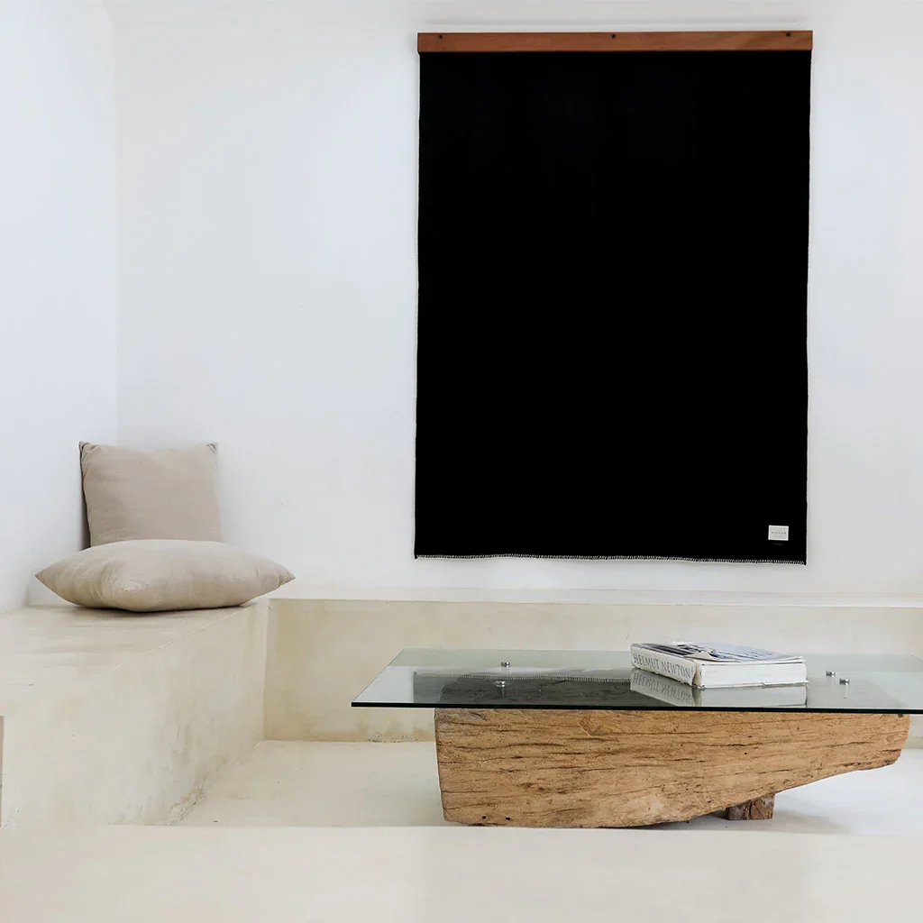“There is nothing quite like the feel of alpaca. This black throw with ivory whipstitch from Blacksaw is something I could live my life draped in.”